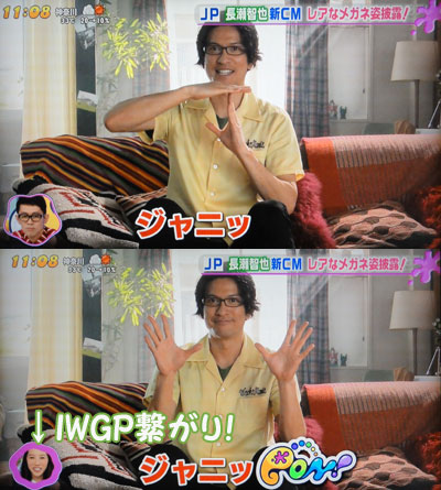 で、夜は、桐谷健太出演の「おしゃれイズム」にVTRゲスト出演の智也。コレ、いつの収録なんだろう?トキカケでは、白いシャツって、あまりないように思うから、他の番組かなぁ?って思ったり。ヒゲ、スゴくて、髪も固めてるから、少し前かな?もう少し、目新しいネタが欲しかったけど、智也がお家に遊びに行ってるっていうのは、初めて聴いたかな?妻子持ちだからね~、彼は。ギター弾いて、歌える環境だから、大丈夫なのか。智也らしいなぁって思ったのが「あながち、悪くなくて」っていう言い方。ビックリするような言葉遣いをすることも多いけど、ほぉ~って思う言葉のチョイスも智也らしくてね。なので、ラジオで語る言葉も、ますます楽しくて。カエル好きって、ドコかで言ってたっけ?メントレに篠原涼子が来た時、カエルの置物がたくさん映ってる写真が出たけど、智也は何も反応しなかったよね?最近お気に入りなのかしら??私も小さい頃、カエル採ってきて、飼ってたり、デッカいカエルを捕まえて、はしゃいでたなぁ~。基本、虫は平気で、ゴキブリでも、平気でバシバシ叩き、その後、つまんで捨てれますしね。でも、やっぱり昆虫の話題より、音楽の話、智也の生活の話が聴きたいなぁ…。