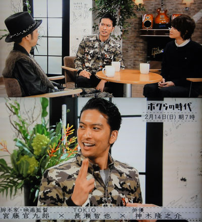 WSでは節分イベントをやっていたけど、2日のイベントは、どんな感じでやる予定だったのかなぁと、ちょっと寂しくなりました。でも、クドカンは、オランダでの映画祭に出席してて、「ZIP!」では寒さに震えながら、レポ(?)してくれましたね♪智也のことも話題に出たようで、嬉しかったし。相性の良さは証明済だけど、やっぱり、それは、智也という役者が存在するから、制作する側の意欲がかき立てられるって事だから。インタビューでも散々語ってるよね。「長瀬くんの表現力にみんな気付いてないなって。すごく貴重な存在だし、日本にはなかなかいないタイプの役者」って。「ちょっと暑苦しいところが貴重だなと」。インタビュアーも21世紀に入って全く出て来てないと納得してるし。とはいえ、Dr.岸のような役もやるんだから、やっぱ、スゴいっす。「ZIP!」で映像見ちゃったから、またまた、Killer Kへの想いが募り始めましたよ。あの、LIVEシーン、客席から立ち上がりたくなるくらい、ゾクゾクしたもん!