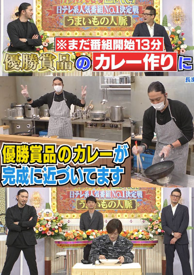 4日はSHOCKの生配信が18:00からあったので、DASHリアタイは消音画面を横目でチラ見。で、画面に「開始13分」で智也がスタジオから立ち去る姿を確認して唖然…。いや、ココ最近は「DASHコーナー」といいつつ、彼らの出番がほとんどない状態だったからね、まぁまぁ、予想通りではあったんだけど、TV誌でカレー作る姿があったけど、別スタジオだとは思わず…。っていうか、太一が受け取ったスタジオと調理をするスタジオは別?リーダーは審査員席で、マボ一人で回答陣スタジオにいたって事?…ま、ソーシャルディスタンスという事で、こういう感じになったって事か。TOKIOが出てる意味、ホントないけど。