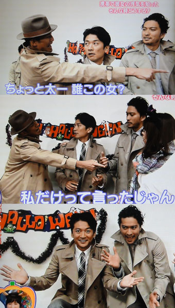 TOKIOの皆さんは昭和の映画スターをイメージしたトレンチコート姿!トークではかぼちゃの話で盛り上がったのですが、男性でかぼちゃ苦手な方って多いんですね…。私は大好きなので「甘くて美味しいのに…」と言っていたら「甘さは他のものでいいんだよー!」と言われてしまいました。笑