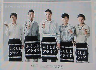 いつもは、チェックしない「めざまし」ですが、最後まで早送りしたら、アレ?と、一時停止したら、ふくしまのお米の生CM。で、ナンですか!?その後ろの、おにぎり持ったイケメン5人衆のポスターはっ!コレ、出てたっけ?CMお米バージョンのエンディングはタオル姿だし、お米の袋を持ってるヤツだもんね。これ、どこで見れますか~!?昨日、ふくしま館へ行った時は、TOKIOが映ってるポスターは、太一の「天のつぶ」しかなかったよぉー!