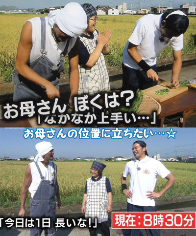 いいねぇ~、出ずっぱり智也。高知がニラの産地とは、全然知りませんでした。ますます高知に行きたくなりました。カツオのたたきが大好物なので、いつかは本場藁焼きカツオを塩とニンニクで食べたいと思ってたんだけど、ニラ付で食べるという新しい味、是非食べたい!いつかTOKIOも高知でLIVEやってくれないかなぁ?今回はニラ農家さん一家もノリのいい、ステキな家族で、ツインタワーも楽しそうで、美味しいニラにテンションが高いようで、楽しかったなぁ~。マボの「智くん」呼び、ナンか、懐かしかったな。LIVEのMCで、赤ちゃん言葉使って、「智く~ん」って言ってなかったっけ?途中でオネエになって「智也くん、お酒強ーい♪」とか。AJツアーだっけ??朝5時半って事は、前乗りだったんだよね。2人一緒だったのかなぁ?夜一緒に過ごしたのかなぁ?高知だから、空港着いた時は、智也は懐かしく思ったかなぁ?…知りたい事、たくさんっ!0円ロケ参加が5ヶ月ぶりということで、漁港へリーダーと2人で行くっていうようなナレでしたが、…んなワケないじゃん!って、ツッコむよね!?だって、智也の交渉力、ハンパないっしょ!「御社の商品」なんて、サラッて言ってるし。ま、リーダーと一緒という事で、更に末っ子感が増すということで。お肉屋さんで、女性従業員の方々にキャーキャー言われての表情かと思ったら、彼女たちの軽いパニック状態が微笑ましかったのね~♪それにしても、山形での0円食堂の浸透度、スゴイね!リーダーも本題に切り出せないって事はないから、ラクだったかな?