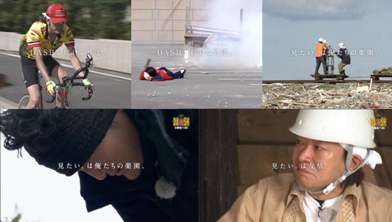 やっとキタ━━━━。゚+.ヽ(´∀`*)ノ ゚+.゚━━━━!! "日テレ ビジョン「見たい、が世界を変えていく。」" のDASHバージョン。「イッテQ」バージョンを初めて見た時から、コレZettai、DASHバージョンが来るっ!って信じてたけど、かなり待たされましたねぇ。まぁ、24時間テレビのリーダーが走ってる映像を入れたかったから、満を持して今って感じなのかな。村の人の映像が出たので、明雄さんは?と思ったら、ちゃーんと、チャーミングな映像でありますね♪サイトには「イッテQ」バージョンがあるけど、「ZERO」バージョンはないんだよねぇ。DASHのは動画Upされるのかなぁ?