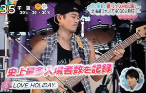 「キーボード!国分太一~!」太一は「チョー!超楽しい~!!!チョー楽しいよぉ~!だからもっと盛り上がってくれよ~!」と、叫んでたけど笑顔じゃないんだよね。声が掠れてたけど、この前の日、大阪にいたのね?大阪から札幌に入ったんだなぁ。