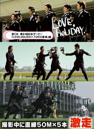 人気5人組アイドルグループ『TOKIO』が17日より全国でオンエアされる『第81回日本ダービー(東京優駿)』新CM『LOVE, HOLIDAY. TOKIO登場』篇に登場する。