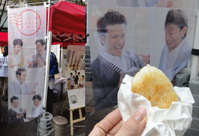 続いて、地方新聞にインタビュー記事があるという情報から、アンテナショップで入手出来るかと思ったら、置いてなくて、都道府県会館に行けば閲覧出来るという情報だけ頂き、退散。そしてお米のノボリを見たいなぁと、ふくしまアンテナショップへ行こうと思ったら、丸の内でやってるJAPAN FOOD FESTAにあるという情報を頂き、丸の内へ移動。すると丸の内仲通りを閉鎖して、ズラッと、全国各地から美味しいものが集まっているようで、アチコチにキッチンカーがいて、「0円食堂」のキッチンカーが見たくなりました。そして、ふくしまのお米「天のつぶ」の宣伝テントがあって、間もなく焼きおにぎりの配布があるという事で、並んで頂いちゃいました~♪TOKIOを眺めながら食べた、フワフワ、こんがりの味噌味焼きおにぎり、美味しかったです♪