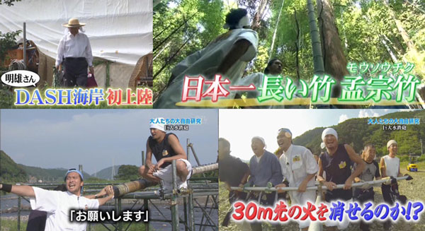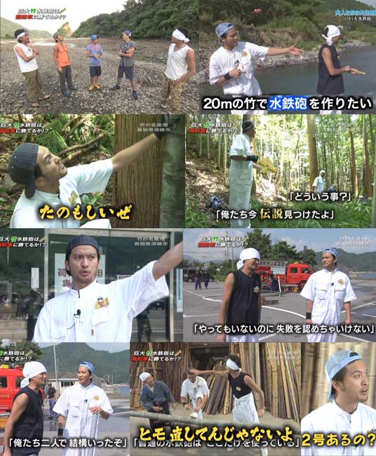 「巨大竹鉄砲は消防車の放水に勝てるか!?」