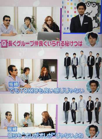 ZIP!では、今週コラボ企画として、6日の「音楽のちから」に出演するアーティストより、自分の曲でターニングポイントになった曲というのを紹介。今日はTHE ALFEEの皆様。選んだ楽曲は16枚目のシングル「メリーアン」デビュー9年で、初めてのヒット曲ということで選んだそうです。この前の曲が行くと思ったんだけど、行かなかったそうで「うまく行かないんだよ、この世界」と、しみじみ言ってるのを、達ちゃんは笑って聞いてるけど、そう思ってんだろうなぁ~。結成40周年経つ中で変わっていないのが立ち位置。桜井さんが、他の2人と、自分のフレットを見るために、下手が良かったからなんだって。桜井さんはデビューしてからベースを始めたから。達ちゃんも、この話(デビューしてベースを始めた話)にはビックリしてました。そんなALFEEに達ちゃんから「メンバー仲良く、長く続けられる秘訣」をタブレット経由で質問。回答は3人とも次男坊で、オレが!オレが!っていう人がいなくて主義主張をしないから、それがいいそうです。そして「TOKIOも、ねぇ!」って話をふって下さいました♪「20年目だよね?」とか「近いものを感じる」って嬉しい言葉☆あ~、ガッツリトーク、してもらいたい!