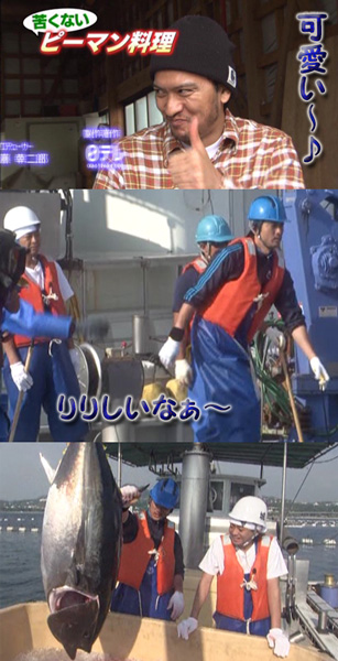 続けてマグロっ!リーダーが言うならともかく、智也はナニワの商人なみに金勘定しちゃうのぉ?お金のこと、結構口にするけどね、太一同様。計算結果に反応するO型さそり座2名は、やっぱり似た者同士!?養殖といっても、マグロはさすがにスケールが違うのね~。大砲で飛ばされるサバがシュールでした。船上での智也が、イチイチ、カッコよくて、見惚れます…。キリリの表情がたまりません♪ でも、さばかれるマグロに、うわってなってるけど、智也もダメなんだっけ?こういうの。達ちゃんが意外とダメっていうのは知ってますが。それでも、心臓をパクっていけるからなぁ。7年間格闘した思い出は、やっぱり強烈なんだろうな。大しけで船から落ちそうになったこともあるんだっけ。そんな事も思い出してたのかなぁ?ま、そんな感慨深くなるほどの時間はないくらい、あっさり終了~でしたが。マグロを見つめる智也の笑顔が、とってもとっても幸せで、嬉しいです。