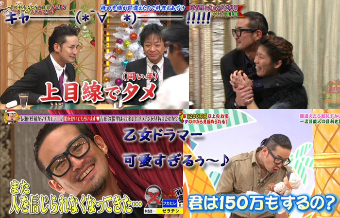 話がズレましたが。マボが髪を切っちゃったのが残念だけど、久々ずっとメガネかけてなくて、とっても色白で、可愛かったなぁ~♪食べ物には強いよね。余裕があるからこそかな、メンバーの回答にいろいろツッコミやらフォローやら。人間不信になったり、逆ギレして、すねたり、人形に話しかけちゃったり、もう、乙女ドラマーが可愛くてたまりませんよ!そして、達ちゃんは、達ちゃんで、智也にいろいろやらせるから、嬉しいな♪そして、達ちゃんは、達ちゃんで、智也にいろいろやらせるから、嬉しいな♪金メダリストの妄想、達ちゃんは、最初から肩抱いてますけど?それにしても、ナンで全員分流さないかなぁ~。予告やったりTV誌に書いてるのに(○`ε´○)プンプン!!