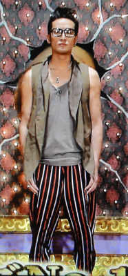 エナメルの靴を履いてると、暴露(?)されたリーダーですが、福岡で、目の前の太一の足元見たら、太一もエナメルだったよー!蝶ネクタイにエナメルの靴って、結婚式にでも出るのか!?って衣装じゃん!でもその後が、グレーのレギンス&半パンって、格差ありすぎ。マボのパンツ、どっかで見た事あると思ったら、コレじゃない?「Autumn」歌う時、白いインナーに黒い長めのジャケットに、このパンツ。マイクスタンドを斜めにして、体も斜めになって、歌うマボ。大好物の顎から首筋がよーく見えるの(*'ー'*)♪仙台、盛岡ではサングラス外さなかったのに、福岡では曲エンディングで後ろを向いて、サングラスを取り、曲終わりにくるっと客席向いて、眉をピクッと上げて、アヒル口で照れ笑い。可愛い~♪
