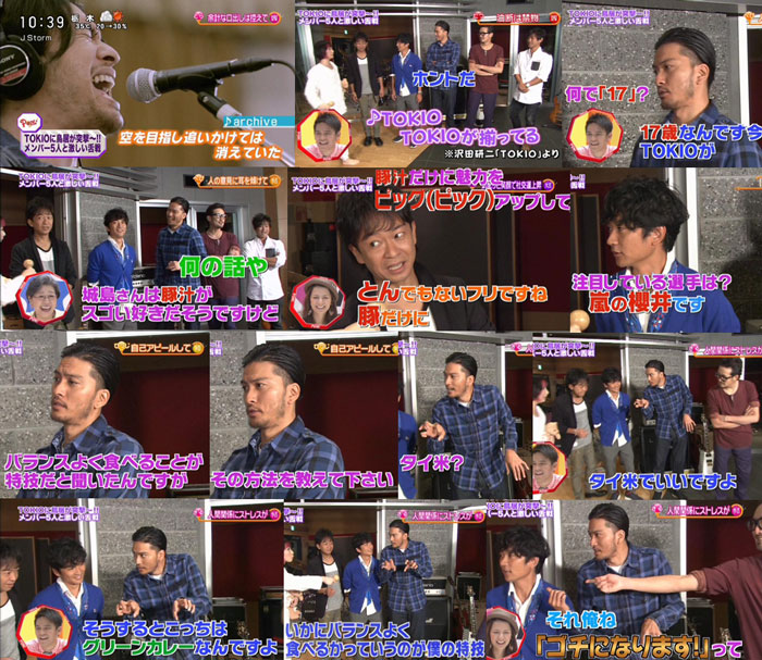 5LDKも書きたかったけど、やっぱり「PON!」ですね。って、当選確認やらナンやらで、時間が全然なくて、「ヒルナンデス」はまだ見てないんですが。やっぱり「ZIP!」「スッキリ!」と同じ収録でしたね~。ツイで、TOKIO絶賛だったから、楽しみでしたが、なるほど~のVTRですよ。やっぱり、そんじょそこらのバンドじゃないよ、TOKIOは。いやいや、そんなトコで感心するのではなく。「archive」は、やっぱり智也の作った曲だなぁと、サビ前のフレーズで、ますます楽しみになりましたよ!もっと聴きたかったのに、求められてるのは、軽妙なトークか。ちゃんとメンバーそれぞれにネタを用意しながら、鳥居みゆきが繰り出すジャブに、軽快にかわし、答えていくのは、さすがだわ☆「PON!」の出演者、みんなで感心してるのも面白かった(*'ー'*)♪智也のカレー好きは知られてるにしても、ご飯とルーを絶妙なバランスで食べるのが特技とは、知らなかったよ!