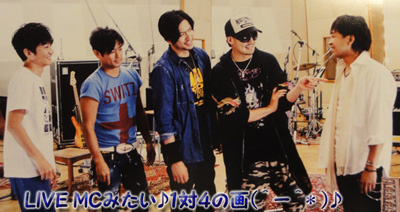 智也の言葉は毎回気になるんだけど、今回は特に。「JUMBO」に代わるような曲ということで、智也に任されたようだけど、以前、「PARKING」をその目的に作ったけど、イマイチ、当時はハマらなかったんだよね~。「SONIC DRIVE」を思い浮かべたけど、智也が語った内容は、更に上を行くもので、ますます期待度が上がります。抽象的な表現でトリッキーな音。わくわくです。でも、ホント智也らしいよね~。「JUMBO」を大切に思う気持ちがあふれてます。更に更に一番楽しみなのが、、『Sometimes』。この曲のエピソードを聴いただけで、もう頭の中ではナンかイメージできちゃうんです。バイク仲間って、あの人かな?この人かな?って顔も浮かんでくるし。そして、そんな幸せな気持ちでいる彼の事を、思っちゃう、智也も、可愛いし、そして智也自身も、お友達の幸せな気持ちを思って、幸せなんだろうなって思うと、コッチも幸せのお裾分けをもらった気持ちになってる。そんな幸せなバラードをLIVEで聴いたら…あぁ、もう想像しただけで涙が出ました。