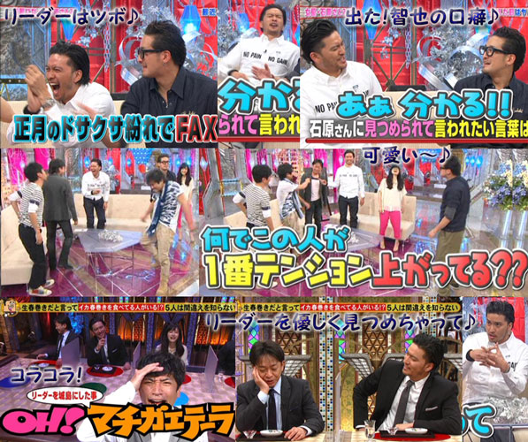 しかしながら、やっぱり達ちゃんとのシーンにジタバタしちゃうね、リーダー同様。そんなリーダーに大喜びの智也を見れて、リーダーに感謝。やっぱりみんなリーダーが大好きだもんね。ゲストの財布に32円しかなかった事を暴露した智也だけど、AJイベントの時のVTRで、新幹線車内販売で太一が何か買おうとした時に、智也がお財布を出して、「小銭大王だから」と自分から払おうとしたけど、50円玉3枚しか入ってなかったよね?その後のメンGでも、その事をツッコまれてたんだから。…懐かしい。