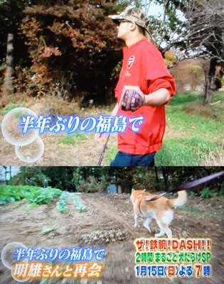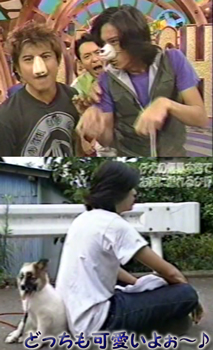 DASH新春SPが恒例のワンワン・スペシャルということで、今年は智也が登場♪というので、過去VTR発掘。智也ってこの1回だけ?マボが出なかった(出れなかった?)回に智也って事だったのかな?この後、しばらくなくて、しつけ方面に企画が変わってったのかな。この「みかん」ちゃんが可愛くて♪智也が無造作にリードを引っ張っちゃったから、コロンと転がっちゃったり、雷に怯えて智也にすがったり、こうやって疲れたと座った智也の背中にピトっと寄り添ったり。