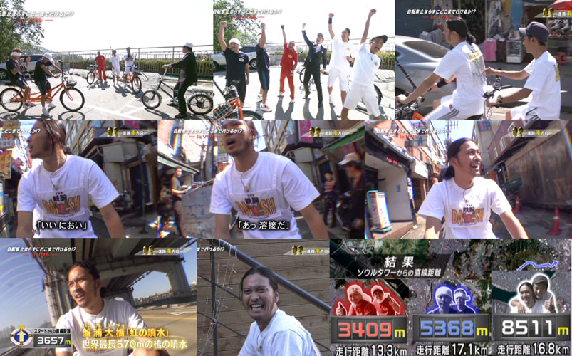 でー、待ってましたの5人企画。コレ、福澤さん登場って、知らなかったのかなぁ?リーダー以外。智也は女の子みたいに口を手で覆って(だから、オカマっぽいって言われちゃうのよ!)ビックリしてるし、達ちゃんやマボもヾ(^o^;オイオイって感じで笑ってたよね?メンドくさいのが来たって!そのおかげで、懐かしいタイトルコールがあって、ジーンとしちゃいました。3組が3組とも、思った通りの活躍ぶりで楽しかった~♪達ちゃんのパワーに押され気味のマボだけど、観光客意識してサングラスかけるのは、マボとして正しい行動ね♪88コンビは、やっぱりスタミナ不足で、一番に撃沈っていうのも、シナリオ通り。酔っ払いに2回も絡まれるのは、サスガ。そして、そして。要領のよさ&意外に体力ある、ヤンチャ兄弟ペア。相変わらず敬語バリバリ智也だけど、きっと意識はしてないよね。大きく広い背中は地図を広げるのに最適。そしてやっぱり秀逸は「いいにおい~♪…あ、溶接だ」だね!いや、きっと、智也の鼻は最初、美味しそうな食べ物の匂いを嗅いでたと思うんだけど、それに溶接の匂いも混じった時に、それはそれで、彼にとってはいい匂いになってたんでしょう☆間がナンともイイ感じだったので、笑えたよね~。橋からの放水を眺める顔がナンとも穏やかでSEXYだ…(゜・゜* ポッ…。この最後、柵に引っ掛かった時の顔が好き♪地図に現れる智也&太一のショット、ちゃんとしたのが欲しいっ!