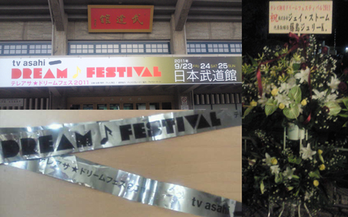 昨日書こうと思って、書けなかった、TOKIO以外のアーティスト他の事。セットは天井からスクリーンが3面、その下に「TV ASAHI DREAM FESTIVAL」とロゴが光ってる。ステージ全景が見えるような位置ではなかったので、詳細が判りません。左右の花道はないけど、ステージから東西スタンドまで花道はありました。私は東側の花道が始まる、メインステージのぎりぎり下手側1列目。TOKIO LIVEより1列目がステージに近いような気がするけど、どうかな?場内暗転してモニタに最初、川越で有名だという「マッスル田中(だっけ?)」の映像が流れて拍手や声だしの練習。途中でナンかグダグダになっちゃった。続いてはスクリーンに「今日は何の日?」とか「北海道から来た人(挙手)?」とか出て、会場の反応を見て、答えの「9月23日」とか「拍手!」とか出て、新しい前説スタイル。お誕生日の人に挙手させ、ちゃんと場内モニタに映しだし、更にHappy Birthday~♪と歌まで。PLUSのTシャツ着てるように見えたけど、どうかな?そして続いて「明日誕生日の人?」も映しだし、Happy Birthdayのイントロを流すも、歌に入る前にストップ。「歌うと思った?」ってイジワルなテロップ。楽しかった~♪それからスクリーンにオープニング映像が流れ、本日の出演者の紹介。5組紹介して「and」と出てからラルクの紹介があると、ものすっごい歓声。完全に5組はAwayですなぁ…。