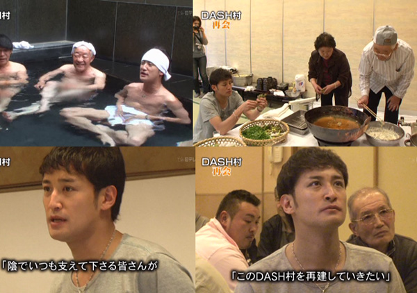今日のDASHはもりだくさん過ぎて…。事前情報から、マボの前髪下ろした姿が見れる!ってことだったけど、数日前からの予告映像では、それ以上な映像があったからなぁ。そして本編、いきなりもう(┯_┯) ウルルルルルですよ。明雄さんの涙はなぁ。マボもZettai泣いちゃうと思ってたけど、やっぱりダメだったね。こういうの、どうして5人全員で出来ないんだろ…?LIVEあったし、リーダー舞台あるし、大変だと思うんだけど、ドラマ撮影のあるマボが行けるのなら、全員都合付けれなかったのかなぁ?こうやって放送してくれることで、ホントに多くの方々に支えられて、この十数年、TOKIOはDASH村を頑張ってやってたんだなぁと知る事が出来たのは、感謝。