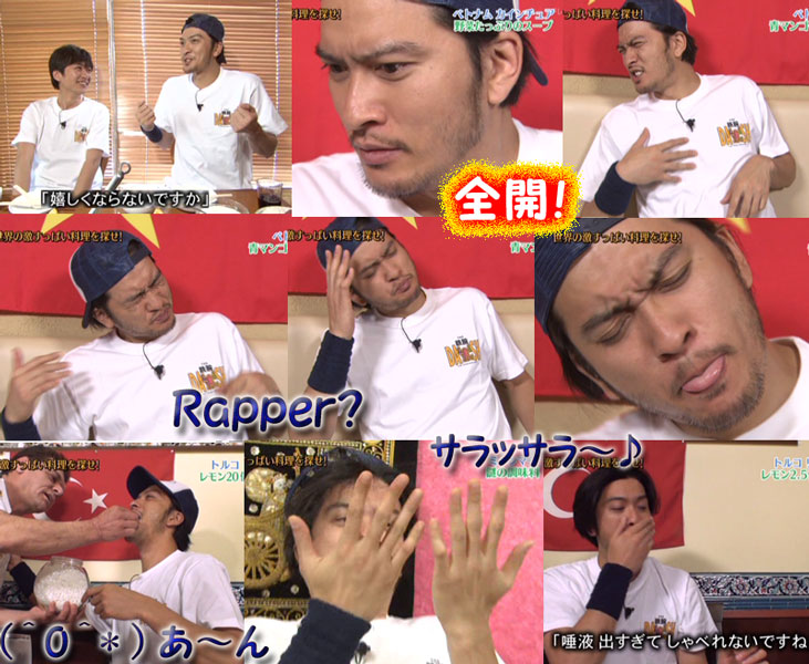 ジーンとしてたら、いきなりレモンを口いっぱいに頬張るヒゲ面登場ですよ。こういうのがDASHだよね。前回の激甘料理に続いて、激すっぱい料理ですよ。間、短いよね?見ているコッチまで顎が痛くなっちゃう。ベトナム料理好きで、よく行くけど、そういえば酸っぱい料理って食べたことないなぁ。池袋なら行きやすいので、今度挑戦してみようかしら。激辛料理は、そんなに得意じゃないけど、酸っぱいのならナンとかなりそう?もだえながら、キャップを取っちゃうシーンが何度かあったけど、なかなかサラサラヘア解禁してくれないのは、何か理由があるのかしら?タレントさんなんだし、撮影してるんだから、顎髭についたもの、取ってあげてよー!