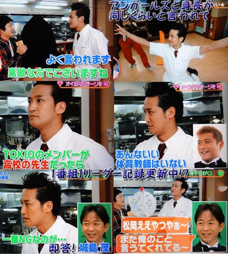* 昔タッキーがドームでジャニさん達スタッフに、髪に赤いメッシュを入れたことを注意されて、そこに紅白帰りのTOKIO到着の連絡に、ジャニさんは、TOKIOからもタッキーに注意してもらおうと思ったら、登場したTOKIO全員の頭が金髪&マボは白髪!それからジャニさんがTOKIOに厳しくなった