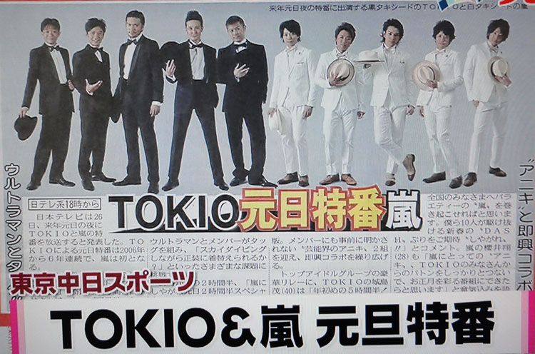 TOKIO、嵐 元日特番 日テレ系18時から
