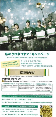 委託配達員(以下クロネコメイト)が、約21,000冊のクロネコメール便を自宅に滞留させ、さらに一部のメール便を焼却処分していた事実が平成22年11月17~19日の調査で判明いたしました。こんなのが、サラっとニュースリリースのところに出てました。法人の荷物だったようだけど、これがもし、チケットや切り抜きやディスクだったらと思うと怖いよー!去年同じようなことがあっての、再発だから、大変だよ、ヤマトさん。