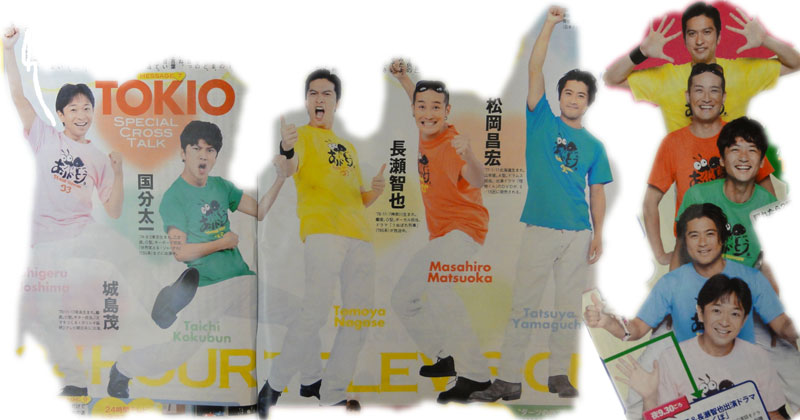 24時間テレビ関係の雑誌登場も打ち止め?ついこの前、切り抜き整理をしたと思ったのに、気付けば、黄色だらけの切り抜きの山が机脇に…。もうどれがどれやら判らなくなっています。テレガイもテレジョンも、ナニやら気合入れまくり状態の写真。やっぱりTOKIOには、こういう印象なんだね。