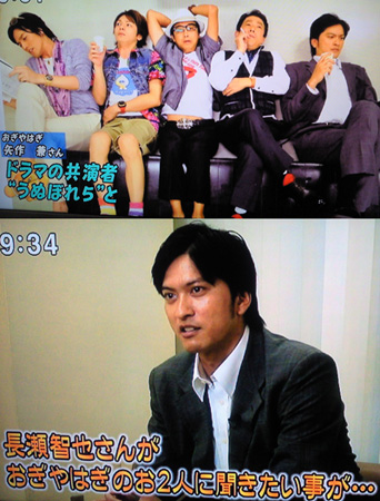 TVガイドには、ジムでの撮影風景。たくましい二の腕に(*ё_ё*)きゅん…♪【追記:Tシャツ・インは、うぬぼれっぽい!?さすが、智也は細かいなぁ~♪】IWGP以来(だよね?)の小雪との共演、楽しみですね。その次がいよいよKyon2のようで。智也とどういうお芝居をするのか、楽しみです。文春を立ち読みしてきましたが、クドカンもぼやいてます。評判がいいのに、数字が…って。ま、そこはさすがのクドカン。これで数字が良かったら、ホントに「うぬぼれ」ちゃうと。夏休みなのに娘さんとお出かけ出来ず、脚本書き(8話だそうです)に必死に頑張ってるようで、可哀想だけど、とっても楽しみにしているので、乗りきって下さいっ!