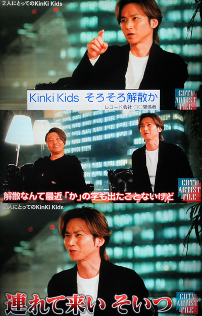 もう何十回目かのKinKi解散報道がある事について、光一が(○`ε´○)プンプン!!しながら言ってましたが、こういうところに出てくる「関係者」って、誰なんだよ?!って、本人が思ってるんだから、こっちはもっと思うよね…。