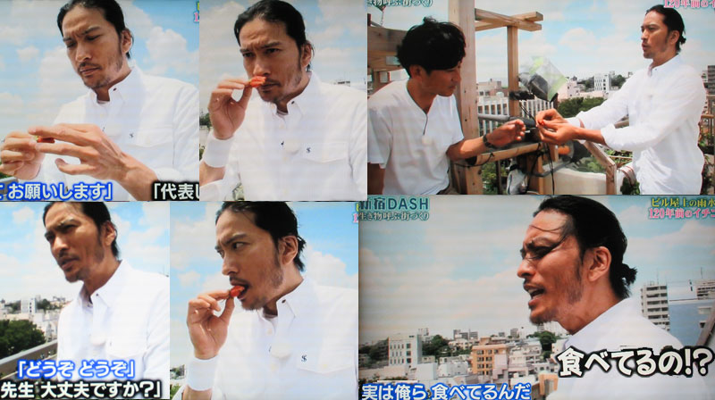「そうですね、ま、まずはあの~、弊社の代表の、え~、病状の件で連日お騒がせしております。ま、あの~、18日、先ほど、ちょっと、ニュース、VTRありますけど、まぁ、私も、その、知らせを聞きまして、ま、ウチのTOKIOのメンバーと、ま、その後、見舞い行ったんですけども、まぁ、こういう言い方をしたらアレなんですけども、思ったより顔色よくて、ま、その後、仕事終わりにも、ちょっと、顔出し、面会に行ったんですけども、まぁ、本人も、まぁ、病気は病気なんですけど、あの~、病室で頑張っておりますので、ま、それ以上に表に出る我々も、ちょっと頑張らなければなと思っておりますんで、ま、今後とも、あの、ホントに皆様、よろしくお願いします。以上でございます」【新宿DASH】幻の「福羽イチゴ」、それは120年前に新宿御苑で生まれた国産イチゴ第1号。明治のVIPしか食べられなかった貴重な苗を、太一&長瀬は環境省から特別に譲り受け、屋上で栽培を開始。そして収穫の時期を迎えるが…