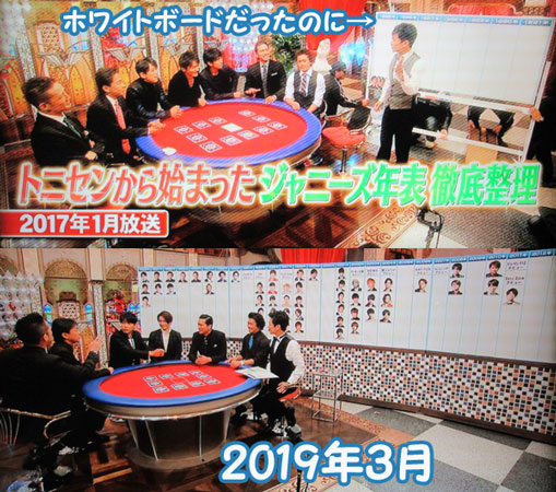 2017年1月のトニセンゲスト回から年表出現。前にも書いたように「5LDK」で、http://trueindividual.ni-moe.com/Entry/2361/中居ゲスト回で、SMAP、TOKIOの入所順を年表使ってやってたけどね。ズラッと並ぶ画像が無かったんだけど、現在、キンプリ高橋くんの2013年入所が最新かな。次週、植草先輩が来るから、1986年より前が増えるのね。そして、2020年春のSPドラマの番宣に木村先輩が出るのが先か、それ以前に中居が出るか…!?アツヒロくんが入ってるんだから、二人も入るべきよね!?