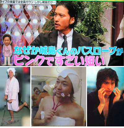 ナゼ、智也は「城島くん」って言ったんでしょうね!?LIVEをしたのが随分昔だから、楽屋の思い出が、それくらい昔に飛んだのかしら…。実物を観る前に、ドル誌で観たんだったなぁ、ピンクのバスローブ・リーダー。WECで何度か実物を観たけど、智也と太一のは観れてないんだよね~。智也の黒いバスローブ姿は、gliderツアー記事で観ただけ。WECでは、智也も太一も、私服や、着替える前に出て来たような。あちこちで目にしましたけど、やっぱり、気になるよね~、「Best of TOKIO」と刺繍されている、カシミアのような手触りで、アカデミー賞受賞者に贈呈されるギフトにも選ばれてるという、ポリエステル100%のバスローブが、智也の手に渡ったのかどうか。