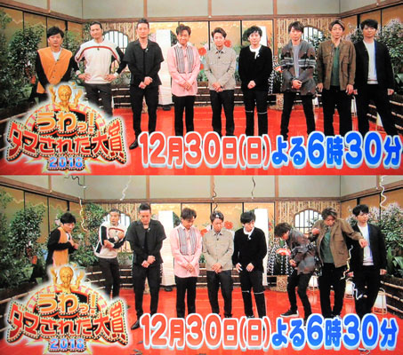 ・KAT-TUN:イノシシ被らなかった事を怒られる上田くん。個々に頑張り、G活動にもっていけたら。「今日、ボイパやった?」と太一にムチャぶりされるゆっち。ボイパ最後に「とにかく頑張る」。コレがウケて「とにかく頑張れよ~」と言われてた