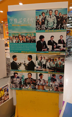パネル展、そりゃあ、それほど大きな期待はしてなかったですよ…。でも、こんな感じだとは!と軽くショックを受けた、タワレコ渋谷店。まず店員さんが知らないんだもん、パネル展の事。他のフロアの店員さんに訊いたら、案内された、ジャニーズのCDコーナー。その上に貼られてました、パネル。で、その真ん前にタッキーのポスターがぶら下がってるから、正面から映せない。そもそも、高いトコにあるから、難しいの。で、パネル観て、コレ、フライヤーにあったとか、話してると、首が疲れる…。