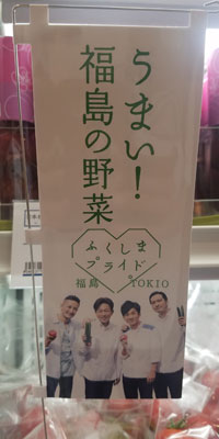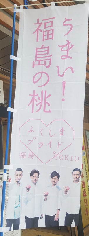 中吊り撮影を終えたら、今度はふくしま館MIDETTEへ移動。この暑い中、お姫様や武士の格好をした方々や、郡山のゆるキャラが頑張ってました。ココは、今まであまりポスターを貼って無かったので、今回も貼る場所が無いかなぁ~と、期待薄で訪れたのですが、入り口には桃の幟があるし、外側に向けてポスター貼ってあるし、店内にも、あちこちと貼ってあるんだけど、残念ながら、目線にあったのは、誤字指摘されてる太一のポスターだけで、あとは、壁の上の方にあって、なかなか撮りにくい。それでも、前より多いポスターには、嬉しかったです。お野菜展示のところに、小さな幟もあったし。