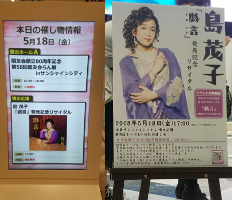 歌い終わって、割とすぐに、お渡し会の準備という事で、一旦はけて、ステージではテーブルとかセッティングが始まって、お渡し会開始が6時ぐらいだったかな。それから、6時半過ぎには用意したDVD全て完売になり、渡し終わったのが、7時10分前ぐらいかしら。その頃は、一休みって、カフェに入ってたので、アナウンスや歓声での判断。で、リーダーの声が聴こえたので、慌てて、ステージを観たんだけど、上からだし、後方だったので、今一つ、音声が聴こえにくかったんだけど、このリサイタルの前にマボからメールが届いていて、今日、明日、明後日とステージ、頑張ってねと。太一は帯番組があって忙しくて、智也は映画のプロモがあって、それぞれが、頑張ってて、一歩一歩前に進んでる。いろいろな言葉を頂いて、その想いを、メンバーに直接伝えますと。しっかりと受け取って、持ち帰ると。島茂子としては、TOKIOファンなので、いつかTOKIOのステージが観たいなと思ってると。皆さんの気持ちを代弁者として、TOKIOのメンバーに伝えると。素敵な時間を、皆さんの想いを、本当にありがとうございましたと。(´;ω;`)もう、涙腺ヤバかったです。
