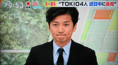 今日は一体、何日で、何曜日なんだろうと、時間の流れが判らない。今日も朝からTOKIOだらけ。スポーツ紙がこれだけTOKIOだらけになったのって、今までに記憶が無い。嬉しい事は取り上げてくれないのに、こういう事があると、ここぞとばかりに取り上げる。…そうだよ、これが、この世界なんだよ。それは23年以上も活動してる彼らは、もう、肝に銘じてることのはずなのに。LIVE MCで、こういう事態にならないように、って言ってた記憶があって、遡ってみたら、2011年4月のびわ湖ホール。達ちゃんがZIP! MCに決まり、太一もスポーツ番組だけど、報道の仕事をやってるから、リーダーに「報道される側にならないで」って。あの時は、ホントに笑い話だったのに…。