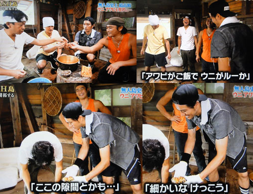 ”料理”って、予告に出ているけど、映像では、”料理!?”っていうモノなんですが、アワビにウニを乗っけただけの…?それでも、智也が幸せそうな顔で食べている絵が見れるなら、全然OKですけど。太一だけが居なかった時の収録なのかな?