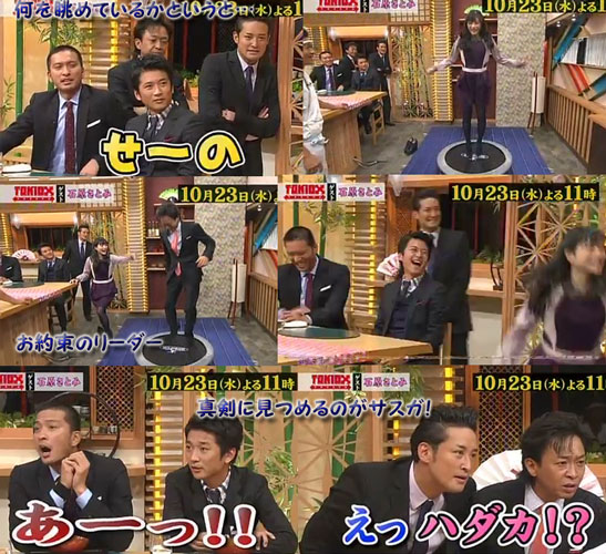 トランポリンを飛んでる姿を眺めてる平均年齢38.4歳のオトコ達の画が、ナンか…スゴいや。そしてやっぱり、リーダーもやらされる羽目になるのよね。結託するメンバーが大好物だから、今度もたっぷりみせてくれるといいなぁ…。