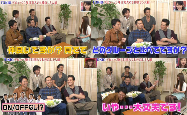仲良しさんである事について、また言われてましたが、逆にツッコミしてたけど、レポーターの子には「カメラが回る前も廻ってからも、ずっと楽し気でいいなと」とはぐらかされ、逆にONOFFが無いことに「ナンか恥ずかしい」となってたTOKIOでした。でも5人で食事には行かないという事に、「5人で行って欲しいですか?」とレポーターに太一が聴くと「いや、大丈夫です」という返答にオオウケしてるTOKIO。続いては「クロコーチ」にちなんで「クロレキシ(黒歴史)」。リーダーはデビュー時の太一のロン毛とするも、実はイイなと思ってるので「シロレキシ」にしたいって、言うもんだから、メンバー総ツッコミ!智也も「クロコーチのスタッフも怒ってますよ!」(* ̄m ̄)プッ。続いては太一が、達ちゃんのクロレキシ暴露。バンド結成前にアクロバット教室に通っていた頃の話。智也が「懐かしい~」って言って、クッション抱えて(コレ、マボがよくやってるんだけど、今日はクッションは智也のモノでしたね)こんなカワイイ笑顔になったの♪暴露したのは、バク転+バク転+バク宙+バク転+「オナラ」+バク転、になっちゃったって話。最後はマボがリーダーの「クロレキシ」。メンバー内でビリヤードが流行っていた頃、マボがリーダーとナインボールをやった時に、リーダーがいきなり9番から落とそうとした事。この時に、智也が「あの頃、みんなやってたよね」って言うと、マボがまた智也の肩に手をやりながら、「コイツがスゴいビリヤードやってて、国分さんに教わった」って。メンバー内のこういう話はホント、大好物!そして最後の智也のメッセージ「ライブでね、皆さんにも楽しんで貰えるように、僕らも楽しめるように作ったんで、是非聞いてもらえたら嬉しいなと思っております」。LIVEがホントに待ち遠しいですっ!