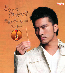 2008年のTOPPOポスター。勝人ヘアですね。CMはエガちゃんと共演したり、コミカル路線なのに、ポスターはこーんなにシブいんだよね~♪毎日TOPPOを見つめてるので、食べたくなってきました。ガーナチョコのTOPPOが好きなんだけど、今、売ってないよね!?