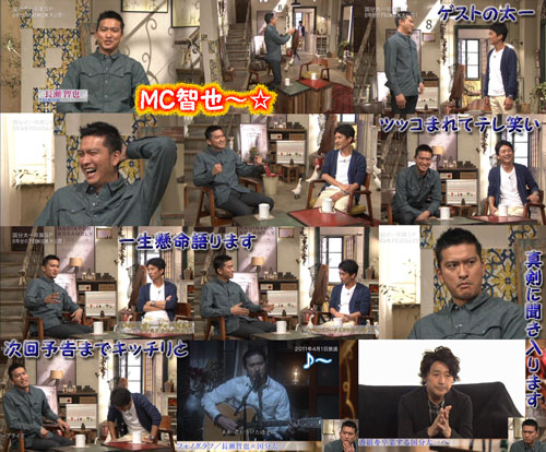 MC:長瀬智也ってなってても、どーせ、太一が仕切っちゃうんじゃないかと思ってましたが、オープニングから、カンペ丸読み状態で、しっかり智也がMCでしたね。太一も、この状況が楽しいみたいで、なかなかいい雰囲気になってたな。ワイプに映る姿がどれもコレも楽しいし、2人の会話も興味深いんだけど、ところどころ、音声なくなるんで、(´・c_・` )ガッカリ。映してるなら聴かせて欲しかった。それにしてもナンで上田くんが映った時に、テンション上がったんだろ!?「炎の体育会TV」の「ミリオンスプーン」でちょっとカラミがあったくらいだったよね。プレミアムゲストとして出演してのセッションではなく、セッションのみゲストで登場というのが初めてだったのが、亀の時だったんだっけ。その時のいきさつが聴けて嬉しかった♪どうせ流すんだったら、本編じゃなく、セッションの為のリハとかのシーンが見たかったなぁ…。マッチ先輩の言葉をじーっと聴いてる智也は、何を思ってたのかな。太一が番組振り返って語る言葉に、ナンかジーンとしてしまった。智也の言葉の端々に、太一に対する尊敬の思いも見えて、グッと来てました。太一も、ウルウルしてましたね。ホントにレアな番組だと思うので、太一がMCじゃなくなってしまうのは、とっても残念です。普通に考えれば、2代目MCは後輩になるんだろうけど、初代MC特典としてTOKIOがゲストとして呼ばれる回数が、他Gよりちょい多めでお願いします。