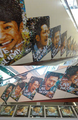 ようやく新ポスターに逢えました~♪モザイクアートのポスターなので、近くで見つめると、いろんな写真が見えますけど、さすがにこの中にはTOKIOはいないよね?そういえば、DASH海岸もモザイクアートを作ってたなぁ。智也が猿島でサタボーをモデルに激写してたのは、もう4年前か…。正装姿のポスターもよかったけど、こういう、表情があるポスターもいいですね。リーダーの笑顔にほっこりします。智也やマボのを見ると、衣装はモーニングのままかな?と思ったけど、他のメンバーのは、首の部分が出てるから、違うみたいなんで、判らないですね。5枚あるから、ズラッと並べて貼るのにはスペースを取るからなのか、エスカレーター部分を利用して貼ってあり、エスカレーターに乗りながら、真横に現れるTOKIOに“o(* ̄o ̄)o”ウキウキ♪但し、コレ、撮影はチョー困難。