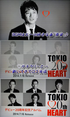 水曜日になって、今日発売分のアルバムやシングルのCMから、来週発売分のCMに代わるだろうと思ってましたが、いきなり来ましたね、「HEART」のCM。今回は、ベスト盤ということで、メイキングDVDの一部を使ったCMかな?と予想してたら、ナンと!CM用に撮影した映像??いきなり太一がモノクロで登場で、ビックリ!『【BGMは「雨傘」】今、皆さんが聴きたい曲って、こういう曲なんだなっていうのを、自分たちも発見が出来たので、スゴくイイアルバムになってます』と喋ってます。で、キャ━━━(*´∀`*)━━━ !!!!!カッコイイ~!このCM、もしかしたらLIVE DVDの特典映像として入れてくれる??だって、5人分あるって事でしょ?全部捕獲出来るか判んないじゃん、JストCMは。5ラウはCMも入れてたから、アリだよね?早く智也バージョン見たい!きっとBGMは「リリック」だな♪