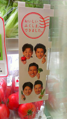 ふくしまのCMが始まって、ポスター掲載発見した、ちょっと後に、ふくしま物産展で、別バージョンのノボリがあるのをTwitterで見つけてたのですが、MIDETTEにもなくて、なかなか遭遇出来なかったのを、ようやくあったと、智フレから写メ頂きましたー♪MIDETTEに大小のノボリがあるそうです。ポスターでは肉を片手にニッコリ智也でしたが、ノボリでは、ブロッコリーを手に、満面の笑顔(^ー^* )♪あぁ、癒されるわぁ~(´▽`) 。この小さいの、欲しいぞー!会社のデスクに置いて、荒んだ気持ちがきっと和むから。このノボリの裏、TOKIOが映ってなく、持ってる野菜が、同じ配置になってて、ちょっと笑っちゃた( *´艸`)