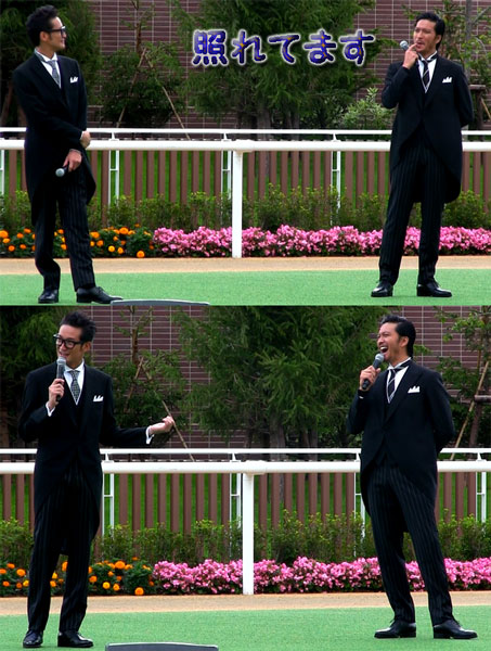 京都や中京っていうのは、今まで行ってないので、もしかして?ジャパンCや有馬記念はTOKIO全員っていう可能性も?但し、12/28はスケジュール的にどうなんだろ?中山で始まって中山で終わるっというのも、いいんだけどね。トークショーの中で、智也がだんだん競馬に興味を持ってるみたいで、とMCの鈴木さんに言われて、ちょっとテレてますが、マボと見合って、ニッコリ笑顔が可愛いぃぃぃぃ~!マボによると、智也は部屋に入るなり、競馬新聞広げて、…( ̄。 ̄;)ブツブツとしてたらしいです。自分なりの分析が楽しいって言ってる智也だけど、その分析っていうのが、よく判んないんですよねー。馬の名前の印象?ゼッケンの番号?それは分析っていうのか!?でも、「パドック見て」って言うから、おぉ!と思ったら「馬の気持ちになったりとか」…(゜∇゜ ;)エッ!?…さすが、智也です。大勢の人に見つめられてても、こーんな風に足をぶーらぶらさせちゃう、自由人智也がステキです。多分、じっと立ってるのがツラいのかなぁ…ナンて、余計な事を思いましたけど。