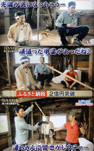 DASH島での騎射【って、流鏑馬とどう違うんだろ?後でWikipediaで調べてみようっと】は、期待通り♪いいよね~、智也とお兄ちゃん's(^ー^* )♪あの都城でのご当地PR課が、大きな成果になってたことを、ちゃんとリーダーは知ってたのね。さすがだわ。そしてその経験を、達ちゃんに教えて、得意げ~な智也が可愛い~☆彡敬語だったけどね。DASHのいいトコは、ちゃんと以前の経験を次へ活かしていくことだよね。四季折々の行事を上手く絡めて、その意味を再認識させて、さらに道具を自分達で作り、そして思いっきり楽しむ!
