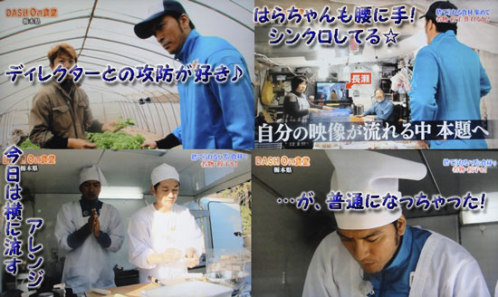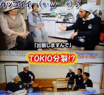ラーメン企画は「油」。ラーメンに油がそんなに重要だとは、この企画が始まるまで考えたことなかったけど、スゴいね。スゴいと言えば、鶏舎の方から「さすがですね」と言われちゃうマボゞ( ̄∇ ̄;) 負けずに智也も、分析力発揮。智也らしい言葉の使い方、表情で、説明してくれる。メンバーがそれぞれ苦労して手に入れた食材を全部活かしたいという言葉。その言葉のバックには、それぞれのメンバーの映像が流れてる。こういうの、DASHスタッフの嬉しい計らい。そしてナンと言っても、智也と動物の組み合わせは最高♪豚舎に近づいて、「ビービー言ってる♪」Twitterでつぶやかれたけど、豚舎に入って「クサい」という単語を使わない優しさ。こういうトコ、ホントにSmart。言葉が持ってるチカラを知ってるんだよな、きっと。震災の時も使わなかったもんね。アグー豚の脂作りに協力してくれた、お母さんたちに「ラーメン屋さん?」と言われ、「出前します」と、とーってもオトコマエの表情で、まるでお姫様を迎えに来た、王子様のような振る舞いにヤラレちゃったよ…。こんなにカッコいいのに、とっても優しくて…あぁ~、智也って… …もう言葉に出来ないよ、この気持ち。