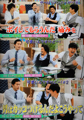 やっぱり、こうやって、普通にトークしてればいいじゃん!チョロッとネタを振れば、こんなにボーイズトークが弾んじゃうんだから。平均年齢40歳以上でも、カワイイよね~。達ちゃんに「やればいいのに!」って、腕をぴょこぴょこさせて、力説する智也が可愛すぎる!そして、甘えを認めてないような達ちゃんに「カッコつけたがる!」と、ツッコむ智也が、ステキすぎるぅ~!それにしても、かなりぶっちゃけましたけど、これもTOKIOだから、ほのぼのとするんだろうな。顔を赤くしながらも、リーダー巻き込んで実演するマボ。リーダーは、さすがって思える、ひと味違ったトコで表現してたし、太一も、らしいなぁ~っていうエピソードで、そしてそれはやっぱり智也のツボで、今日イチ笑ってたよね(* ̄m ̄)プッ。達ちゃんも、自演して、自分で照れちゃってるし、それが、達ちゃんらしいし。智也は髪の毛と耳たぶ。これも納得なんだけど、それよりも、「女性の柔らかいところ」を求めてるって言ってることが、やっぱりね~って思うんだな。肉付きいい方が好みでしょ??