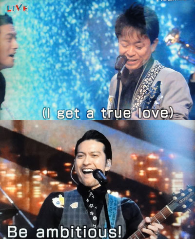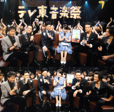 紅白以来のTVでのパフォーマンス(だよね?)、さすがに去年ほどのパワーを感じられなかったけど、ステージでは出演者中、一番盛り上がったと、ひいき目かも知れないけど感じました。ま、バンドスタイルで出たMusicianが少なかったからね。テレ東の、TOKIOに対する思い入れも、バックに出て来た、メンバーイラストに感じたし、最近、リーダーが20周年の時のような色気を感じなくて、ちょっとガッカリしてたけど、Guitaristとして、そしてファンがいてっていう中では、やっぱりカッコいい~♪途中のギターソロで、大橋アナの横に座り、エロテロGuitaristとして、悩まし~い目線送ってるのは、さすが!ブラウスの胸元と相まって、SEXYだったなぁ~☆この時のマボの表情が見たかった!去年も思ったけど、やっぱりMusic DAYよりテレ東音楽祭の方が参加したいよね、MCを太一がやる限り。日テレのは、MCのグループがメインになるもんね。番組表で、ナンで2つに番組が分かれてるんだろう?って疑問に思いつつ、両方予約したのに、1台のレコーダーは途中からしか録画出来てなかった!もう1台の方は、ナンか胸騒ぎがしたから、番組表の時間を操作して、前後に余裕を持たせたんだよね。偉いぞ、私!参加した方々のお土産話を拾い集めてないから、CM中がどうだったのか、本番でも映ってないトコはどうだったのか、気になります。昔はいろいろレポしてくれるファンサイトが結構あったけど、今はツイで、あっという間に流れてっちゃったり、仲間内のLINEだったりで、なかなか目にすることがなくて寂しんだなぁ…。私も昔みたいに、いっぱいレポ書きたいんだけど、参加出来てないからね…|||(-_-;)||||||